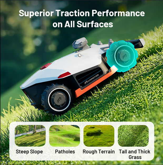 Overvind skråninger op til 80% samt glat eller ujævnt terræn med solid trækkraft for en jævn, uafbrudt græsslåningsoplevelse.