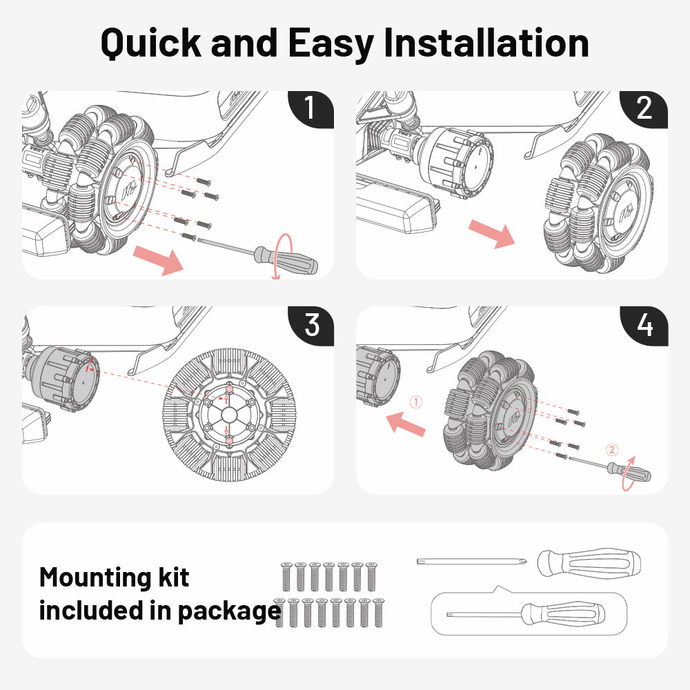 Hold din plæneklipper i topform — det er ikke kun din græsplæne, der har brug for pleje. Udskift regelmæssigt Omni Wheels for at sikre, at den forbliver smidig, effektiv og klar til alle terrænforhold.