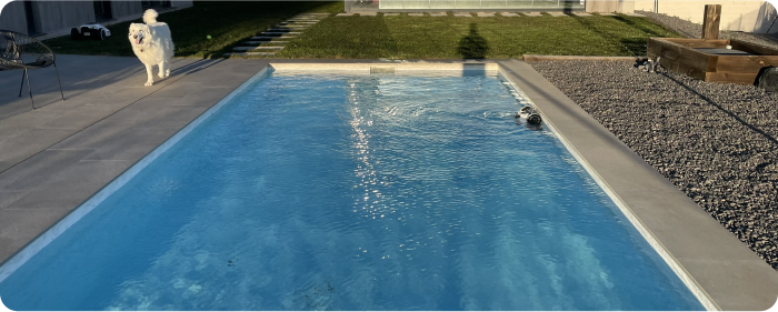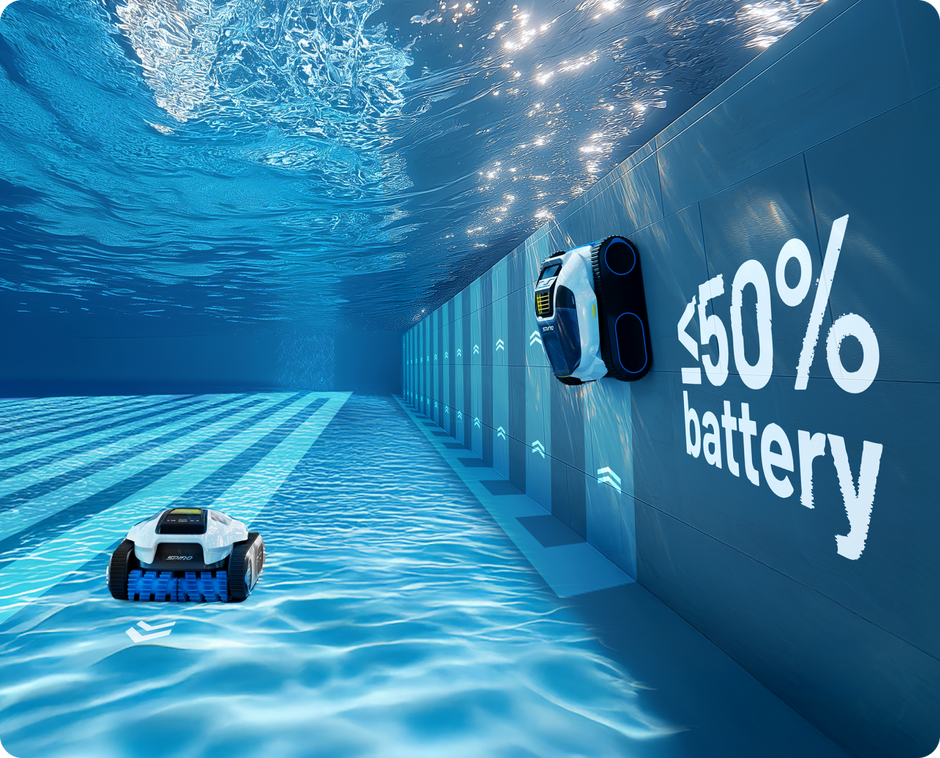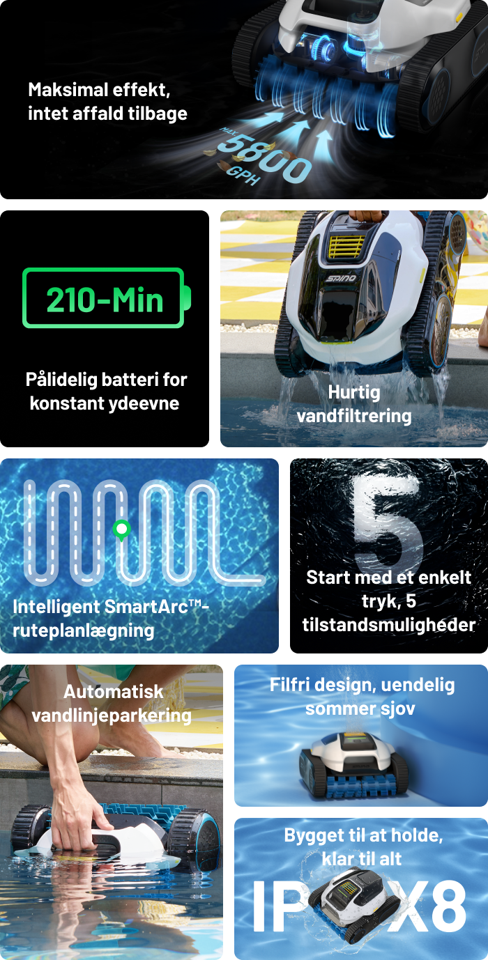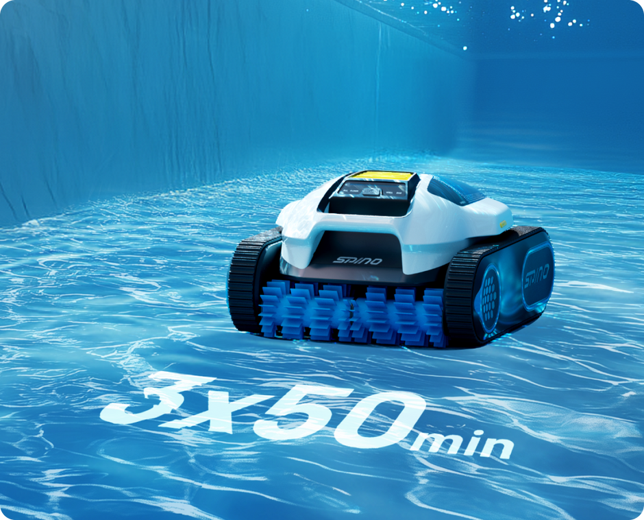 Med flere højpræcisionssensorer og avancerede algoritmer optimerer den trådløse poolrobot Spino E1 automatisk rengøringsruterne. Efter hver cyklus justerer den sin retning, så hele poolen rengøres effektivt og grundigt.
