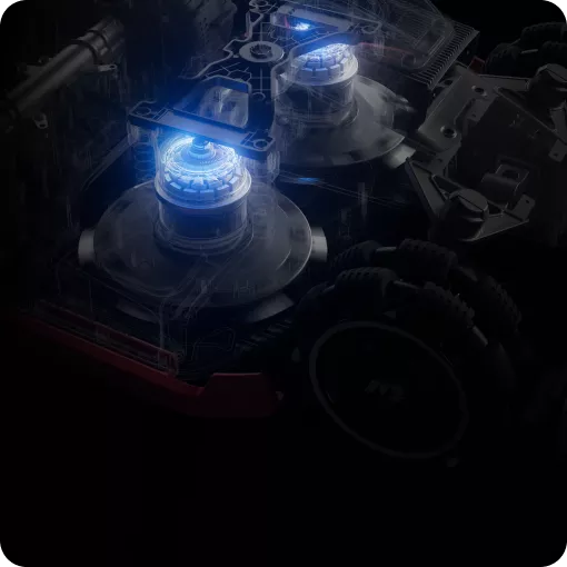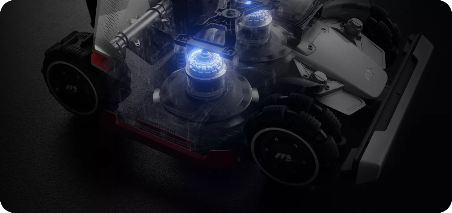 To 165 W motorer med højt drejningsmoment og 6-bladede skiver arbejder sammen med Mammotion LUBA 3 robotplæneklipper's AI-vision for automatisk at justere hastighed og effekt baseret på græssets tæthed, hvilket maksimerer klippeydelsen og energieffektiviteten.